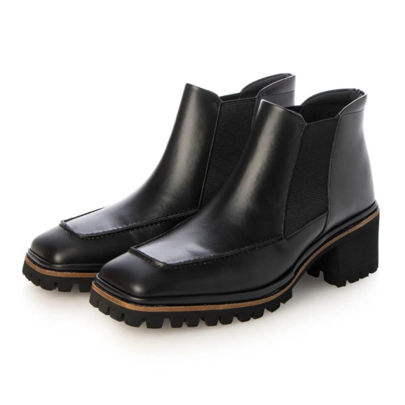 ワイドなスクエアトゥが新鮮なタンクソールショートブーツ。ローファーのようなアッパーのデザインがポイント。