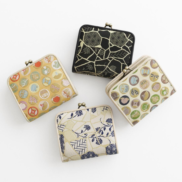 大きく開くBOX型の小銭入れや折らずに入るお札入れ、6つのカードポケットで収納もバッチリ。Kintsugiジャガード2色と福尽し2色の全4展開です。