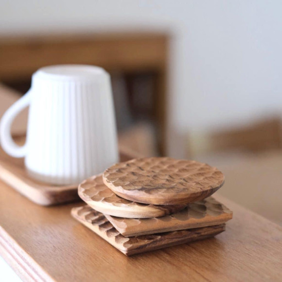 世界三大銘木と言われるチーク材でつくられたコースターです。