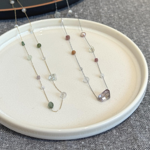 個性豊かな天然石とビーズは、それぞれの色合いや形もさまざま。