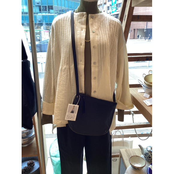 マチのないシンプルな形で、とろみのある柔らかな牛革がエレガントなニュアンスを醸し出しています。