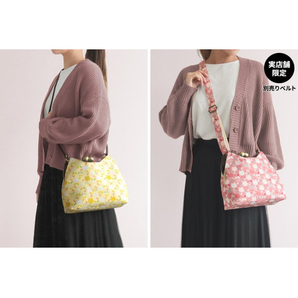 キュートな猫耳が付いた『がま口にゃんこポシェット』は猫好きさんにぜひ使ってほしいバッグです。実店舗限定でショルダーバッグ用の共布ベルトもご用意。ぜひセットで合わせてください ♪ また、綿100%で吸水性に優れた、同柄のタオルハンカチも同時発売!サイズは約22cm×22cm。プチギフトにもおすすめです。
