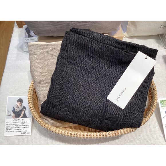 ざっくりとしたリネンガーゼ生地と薄いコットン天竺ニット生地を合わせたスヌードです。