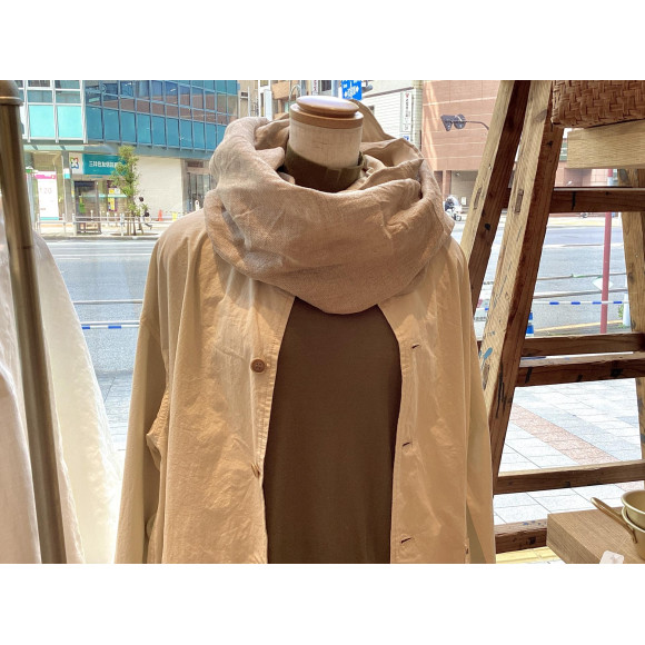 ワンウォッシュ・天日干し加工でナチュラルな風合いで、 首元にくるくると巻いたり羽織ったり、 気温に応じてアレンジを楽しめます。