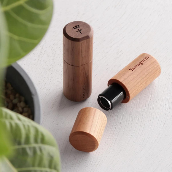 見慣れたネーム印を天然木に装着するだけで、手に取るたび心地良い、こだわりの道具へと仕立てます。