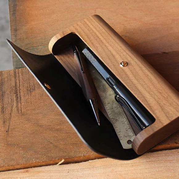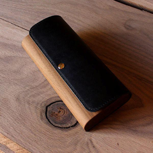 木と牛革のペンケース