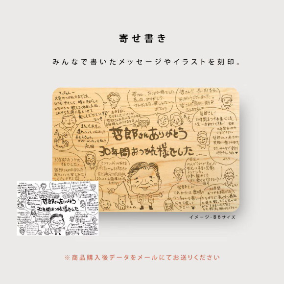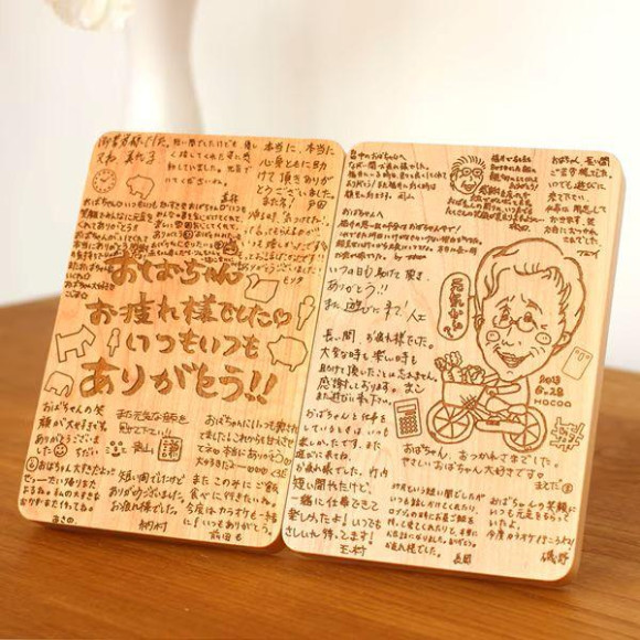 重厚感ある無垢材に刻まれた刻印は大切なメッセージをしっかりと伝え、木の経年変化と共に深みを増していくセンスの良い贈り物になります。
