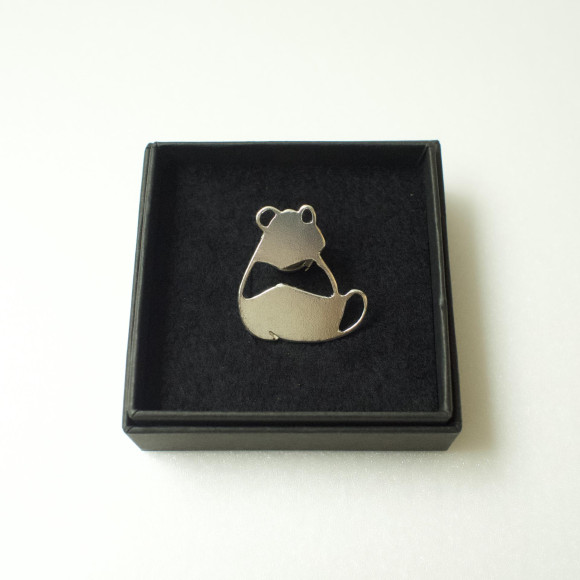 ぽってりとしたパンダのシルエットモチーフがかわいいピンブローチ。