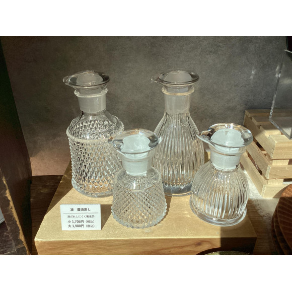 1911年(明治44年)に浅草で創業した歴史あるガラスメーカー「水崎硝子」が企画し、日本の硝子工場で作られている醤油差しです。