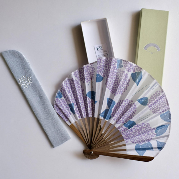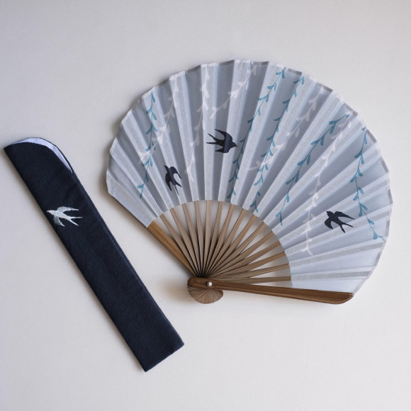 扇面の柄に合わせて刺しゅうが施された扇子袋に収納すれば、