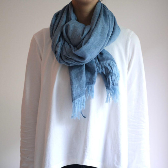 今治のタオルメーカー「kontex(コンテックス)」による、細番手のコットンと高級メリノウールを使用した、通年使える大判のストールです。